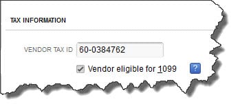 Figure 3: If there’s any possibility that a vendor may require an IRS Form 1099 at the end of the year, be sure to check this box.