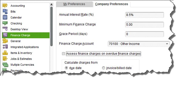 Figure 1: Before you can start adding finance charges to overdue invoices, you’ll need to establish your company preferences.