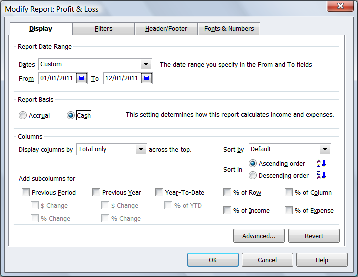 Memorize Reports – These reports will not reflect the change you make from Accrual to Cash basis and vice versa.