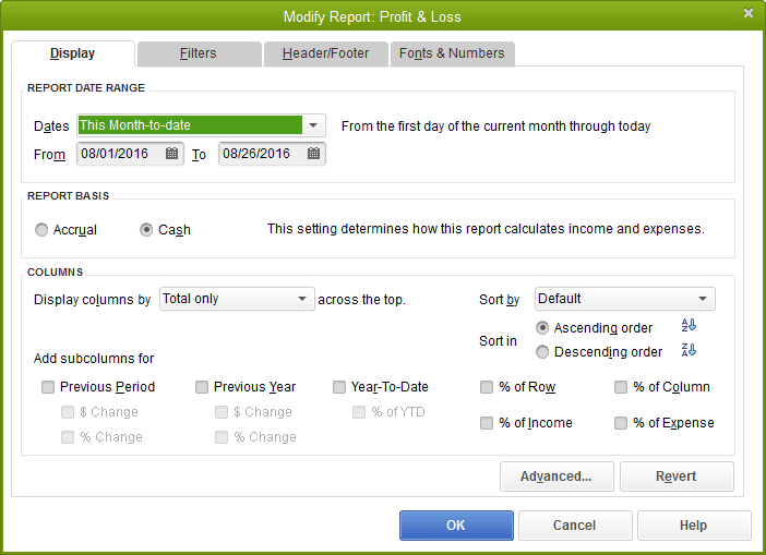 • When you do that all the reports that were prepopulated by QuickBooks should be on cash basis with some exceptions.