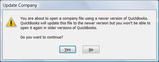 When you buy a new version of QuickBooks (QuickBooks 2012 has some great additions!), the company file you were using in your older version needs to be updated to work in the new version.