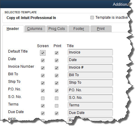 Figure 3: QuickBooks gives you tremendous control over the content in your forms.