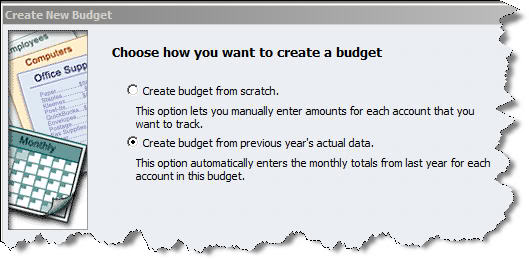 . This doesn’t need to be as onerous as you might expect – you can start by pulling in your real data from the previous year as a base. Build in line items for ongoing accounting support like QuickBooks maintenance. Click on Company | Planning & Budgeting | Set Up Budgets