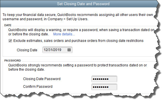 Figure 1: If you set a closing date of December 31 in QuickBooks’ Preferences, you need to prepare your company file for this deadline in advance. We can help you get ready.