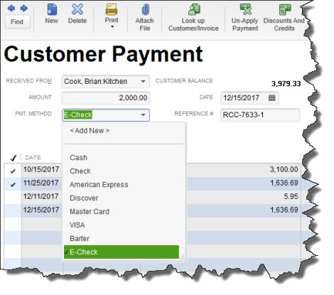 If you’re applying a checks payment to an invoice, you’d use this screen. You can also apply an e-check to a sales receipt.