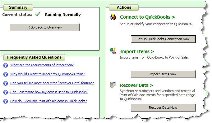 Point of Sale was built to be integrated with QuickBooks. So it makes sense that by its tenth version, it has streamlined the connection process. To link the two applications for the first time on one PC, click Financial | Financial Center | Show Advanced Options.