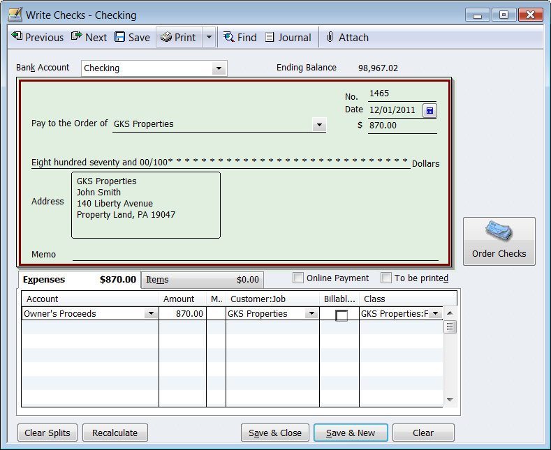 A: When you own a property management company and are managing other owners’ properties, you should setup the owners as vendors when paying them owner’s proceed.