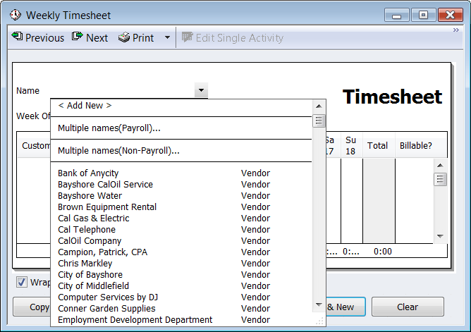 Open the Weekly Timesheet and select Multiple names (Payroll).