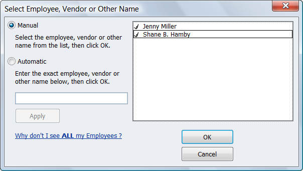 Select the Employees for whom you would like to create a time sheet. Click OK.