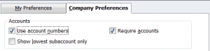 The Company Preferences tab in the Accounting window has many options so we will be covering this section in small parts. So, here is the first part of the Company Preferences tab: