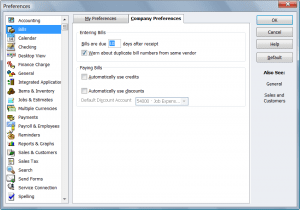 - Checking this option will automatically apply any discounts to a QuickBooks Preferences Bills that is pay in the Bill Pay section