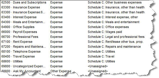 Here, QuickBooks shows you which tax lines have been pre-assigned to your accounts.  You can specify a tax form line for unassigned accounts, but this is something you should not attempt on your own. This report, though, will give you an idea of how useful your report output will be and where you’ll need our assistance.
