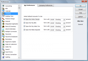 The QuickBooks Preferences Checking section of the preferences screen in QuickBooks contains all options referring to the writing and formatting of