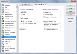 QuickBooks reports and graphs: Company Preferences
