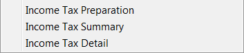 The Income Tax Detail lists each transaction associated with each tax line, expanding on the previous report.