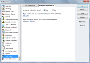 QuickBooks tax 1099 : Company Preferences