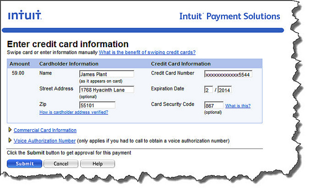 This screen appears when you are ready to authorize a Credit Card Payments in QuickBooks