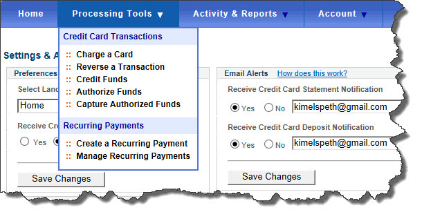This is a screen from the Merchant Service Center, where you can create email alerts notifying you of deposits.