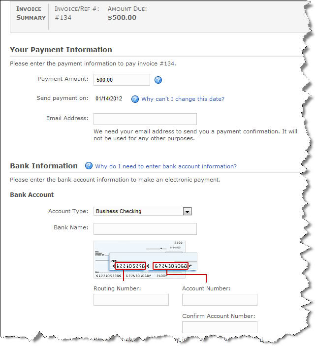 When you send these invoices, they’ll include a short paragraph telling customers that they can remit payment online, with a link taking them to the web page: