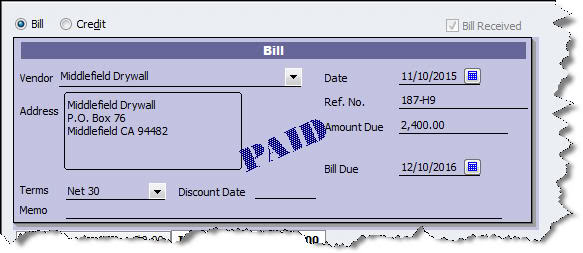 You can just pay bills by using Banking | Write Checks or Enter Credit Card Charges. But the payoff for tracking bills is instant access to your accounts payable status, better relations with vendors, and a more insightful accounting of your company’s cash flow.