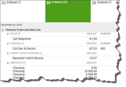 So consider adding one more tracking tool: the QuickBooks calendar. This graphical screen isn’t designed for data entry (except for to-do’s). Rather, it’s designed to give you a quick overview of your financial activity, both historically and in the future.